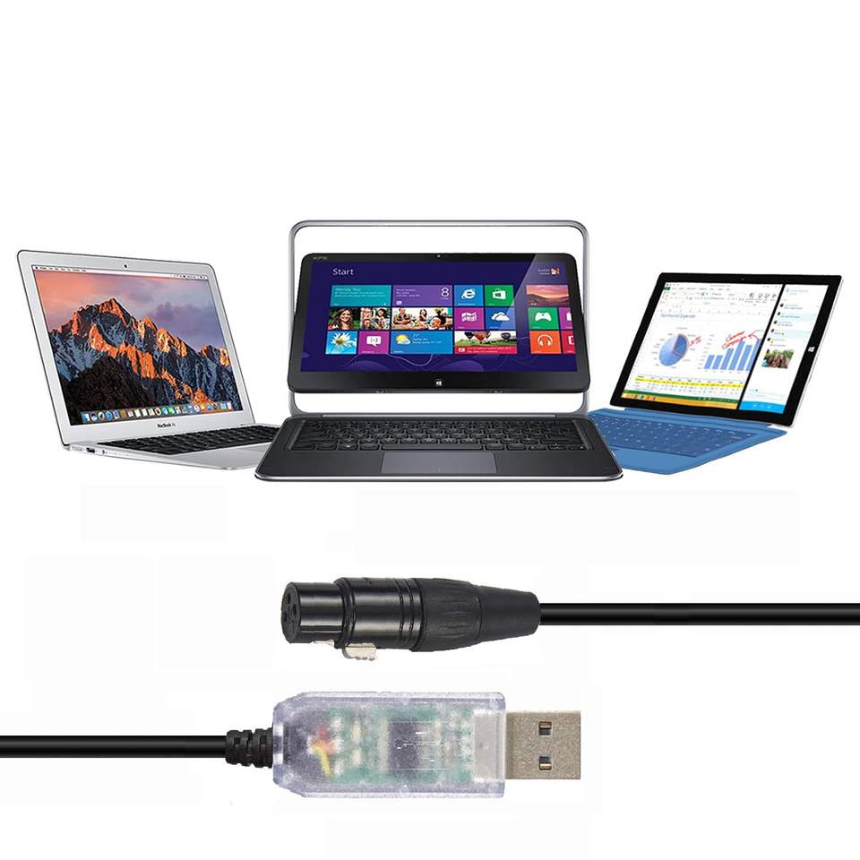 Feanteek USB DMX câble RS485 adaptateur convertisseur 3PIN XLR femelle DMX512 Interface Freestyler logiciel PC contrôle gradateur FT232RL