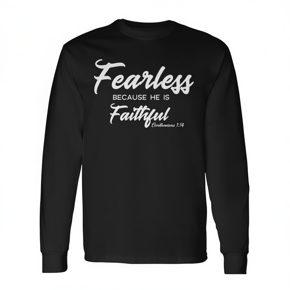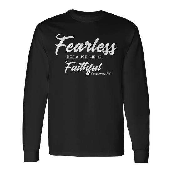 T-shirt à manches longues avec citation chrétienne « Sans peur car il est fidèle »