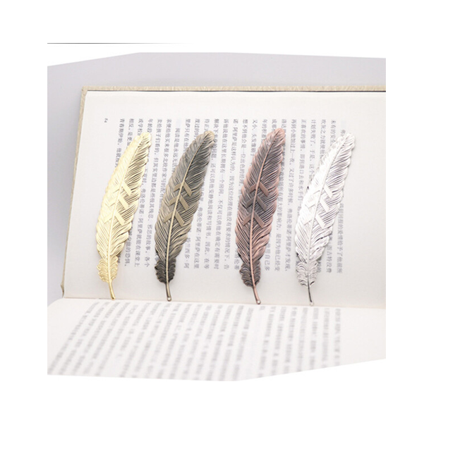 Marque-page en métal personnalisé en forme de plume, modèle en laiton, vente en gros pour cadeaux d'école et d'enfants, marque-page en métal plume