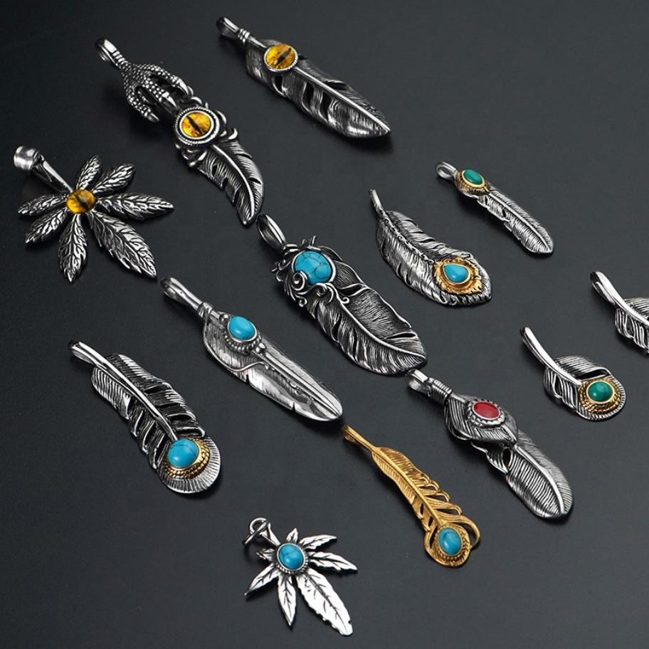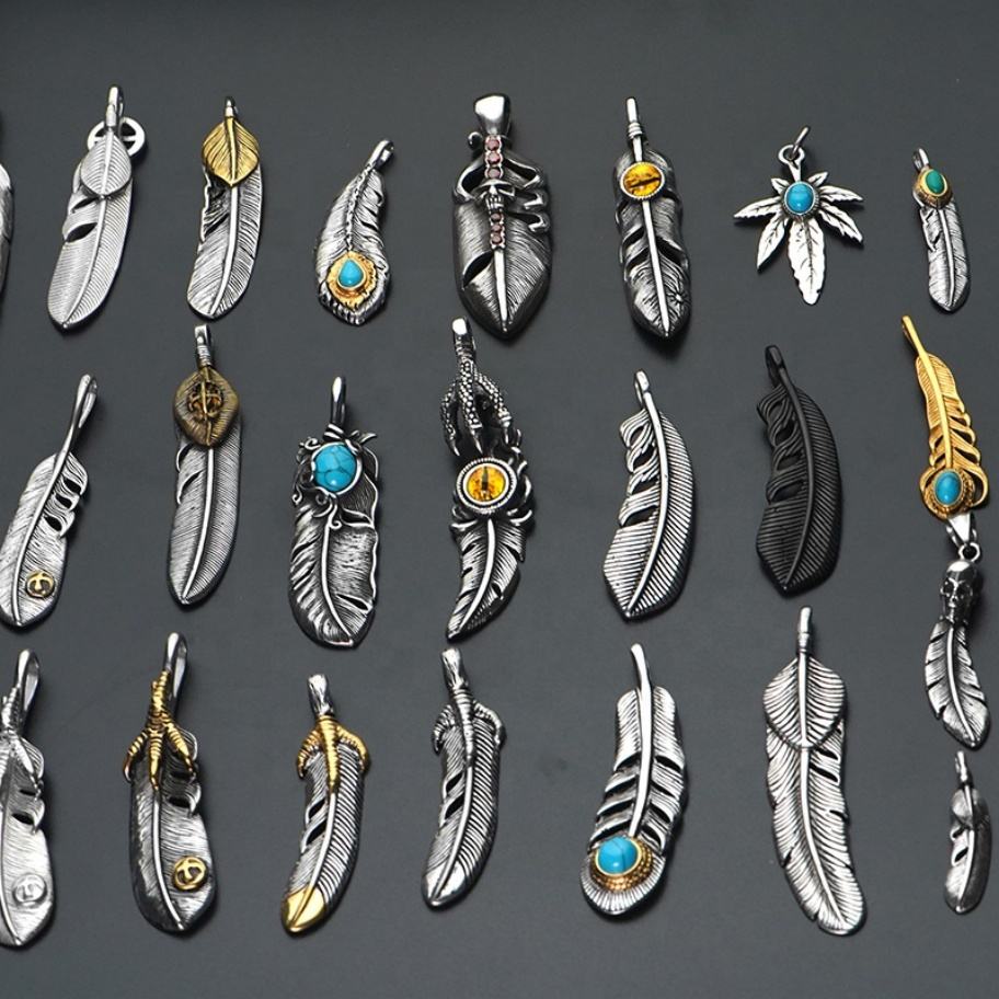 Colliers en plumes, pendentifs multi-styles, acier inoxydable, bijoux pour hommes et femmes, accessoires tendance 2024