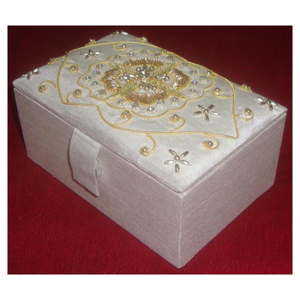 Caractéristique Durable fait à la main conception Unique broderie Zari et boîte à bijoux brillante perlée fabriquée par indien
