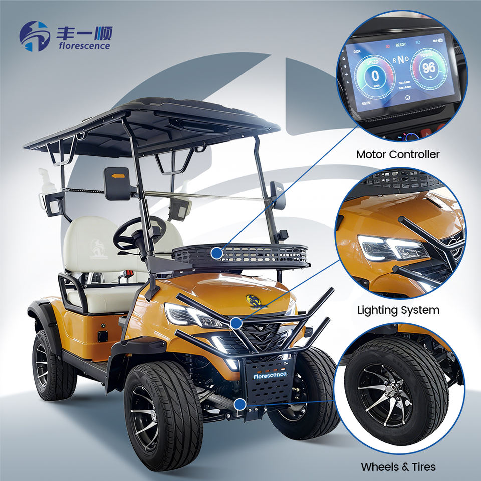 Voiturette de golf électrique améliorée avec éclairage LED, affichage numérique et contrôle intelligent de la vitesse pour une sécurité nocturne accrue