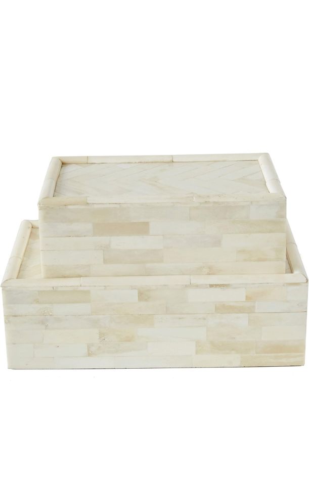 Boîte à couvercle en os naturel avec motif en brique idéal pour la décoration intérieure, les cadeaux et le style Feng Shui.