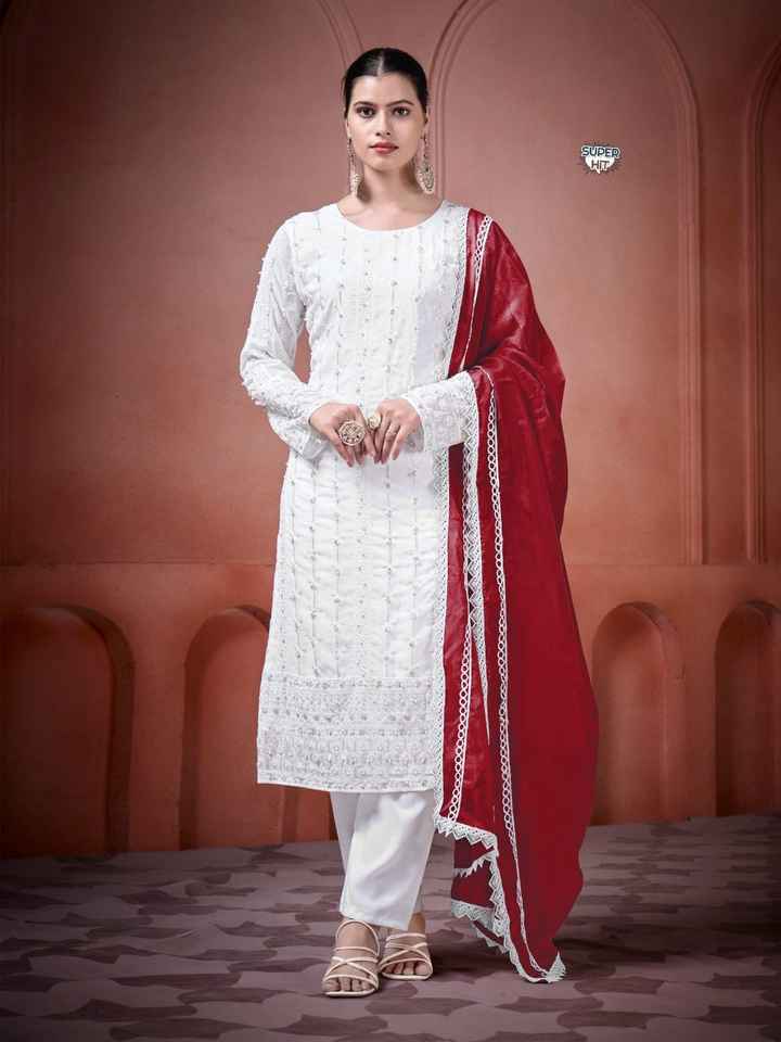 Avec un bel ensemble de costumes lourds magnifiquement décoré avec un pantalon assorti et une dentelle Dupatta