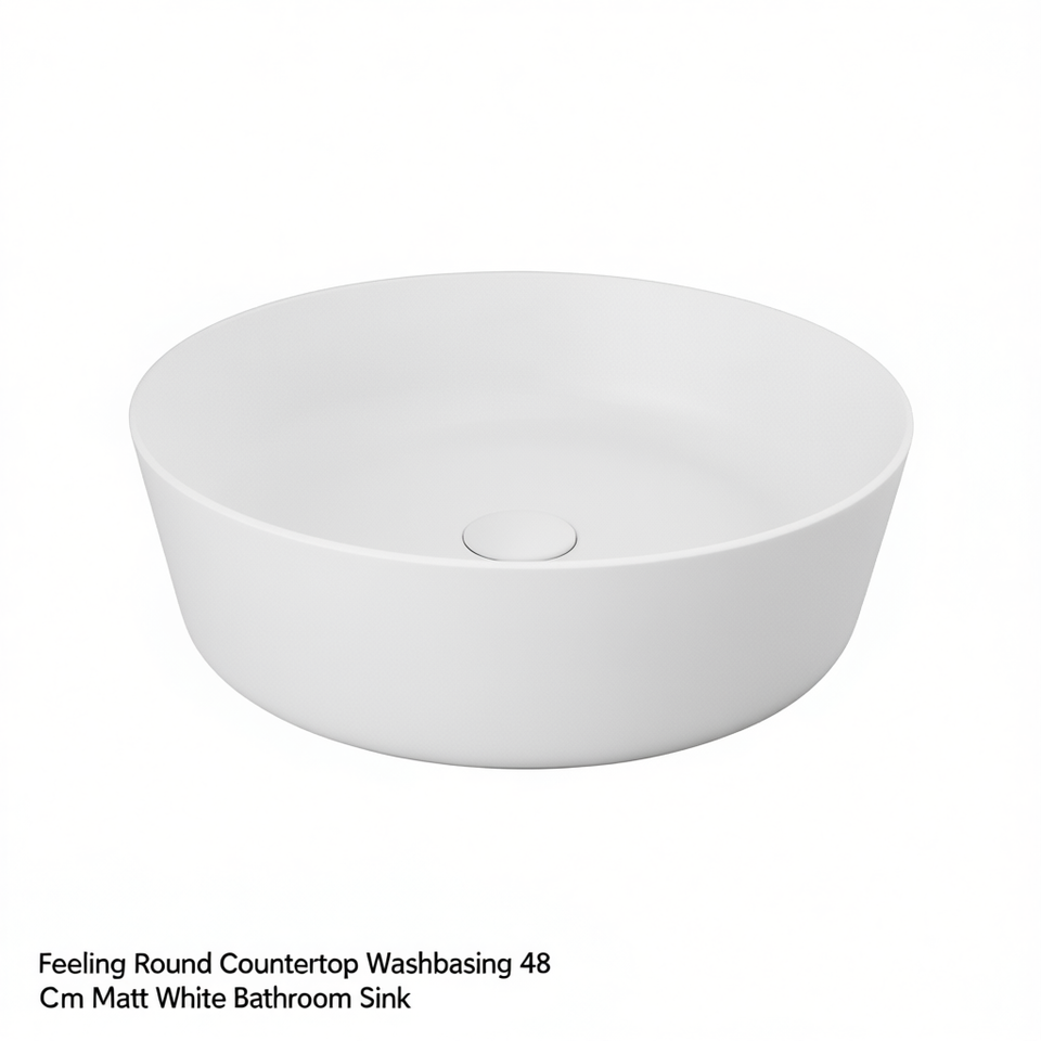 Lavabo rond à poser 48 cm blanc mat pour salle de bain
