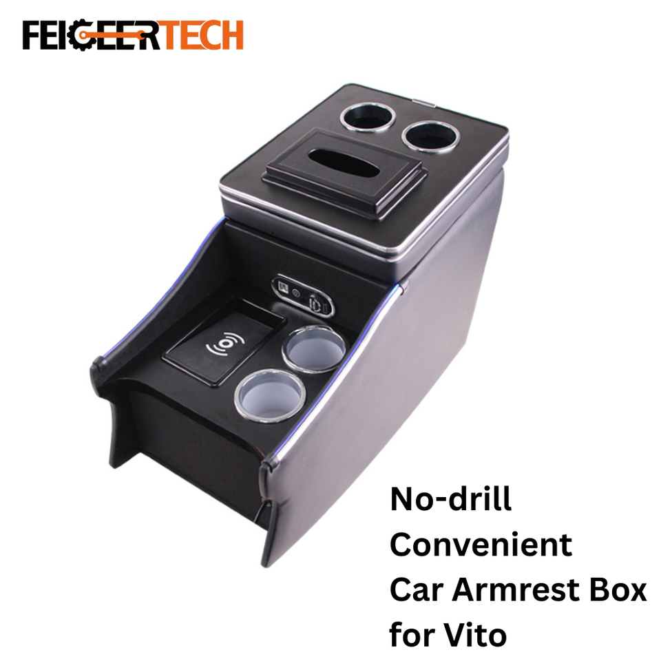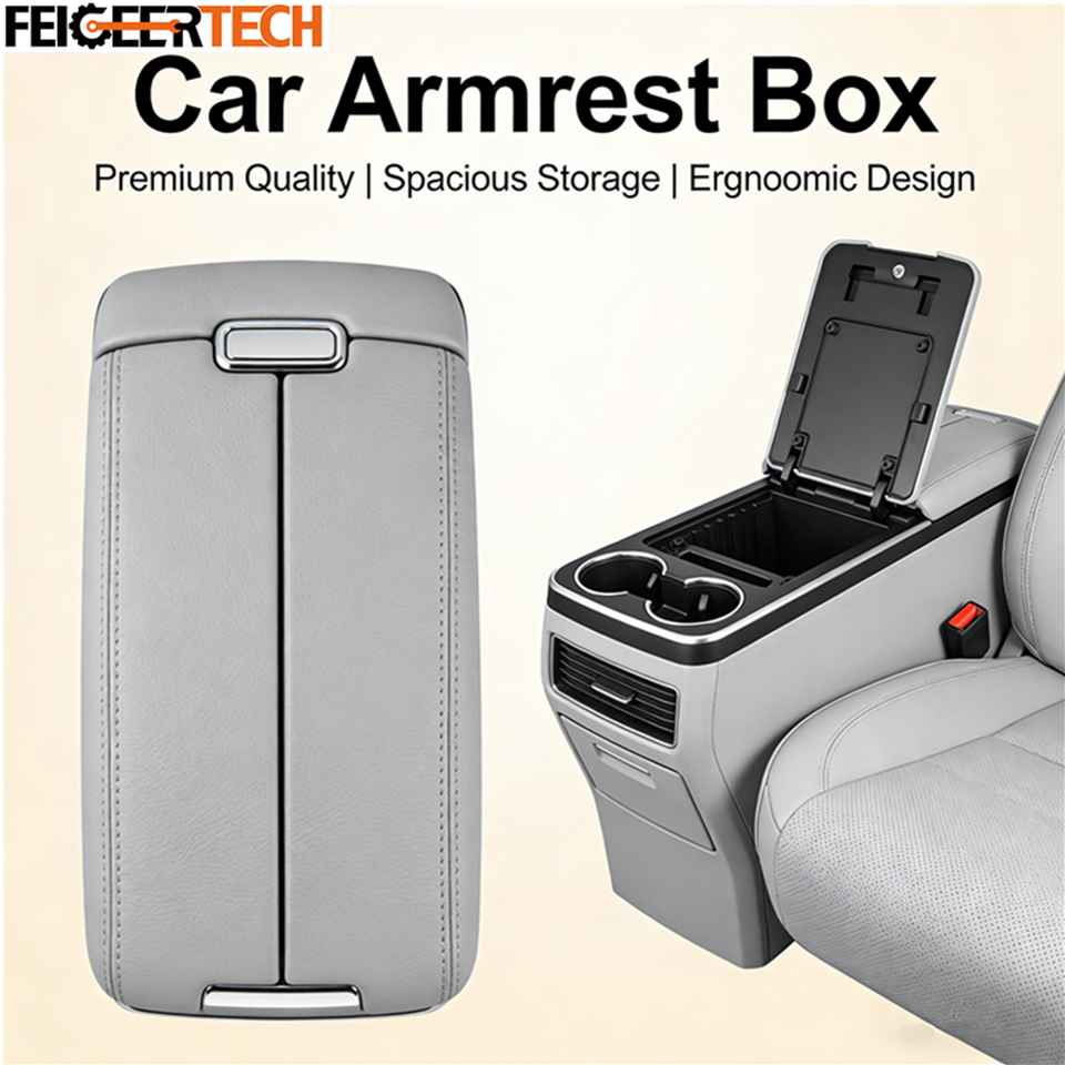 Boîte d'accoudoir modifiée pour véhicule Feigeer Tech, grande capacité, style professionnel, avec rangement surélevé et porte-gobelet