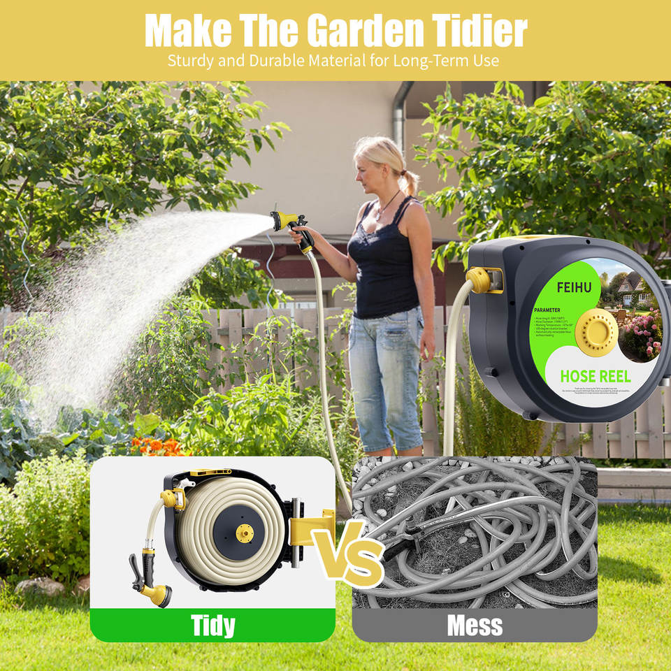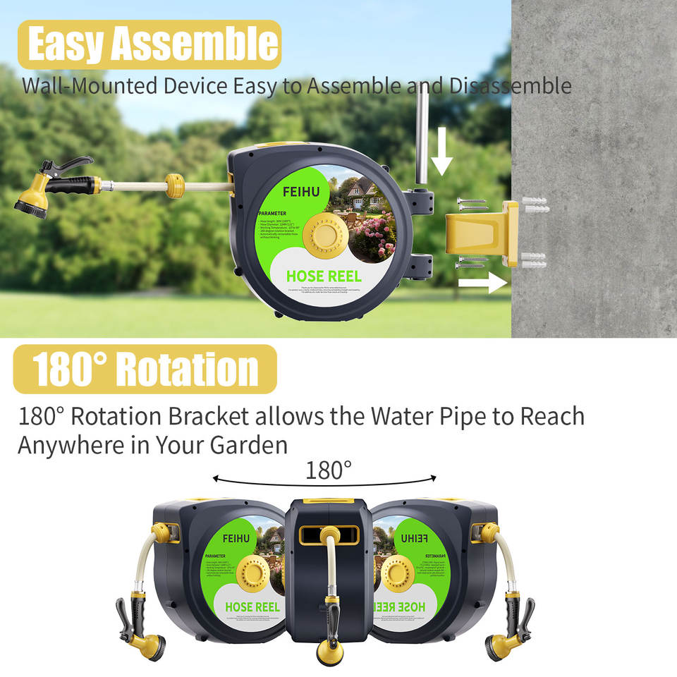 Feihu Enrouleur de tuyau d'eau automatique mural de 1/2 pouces Tuyau de jardin et d'irrigation rétractable