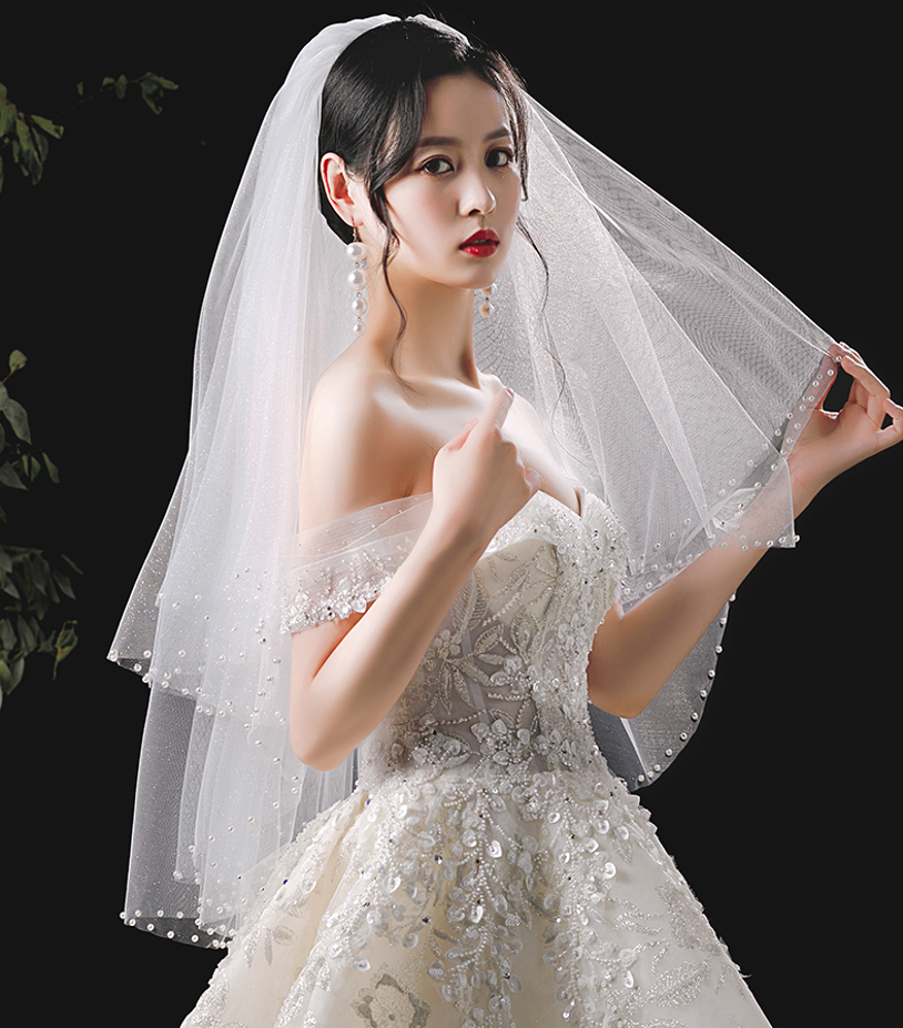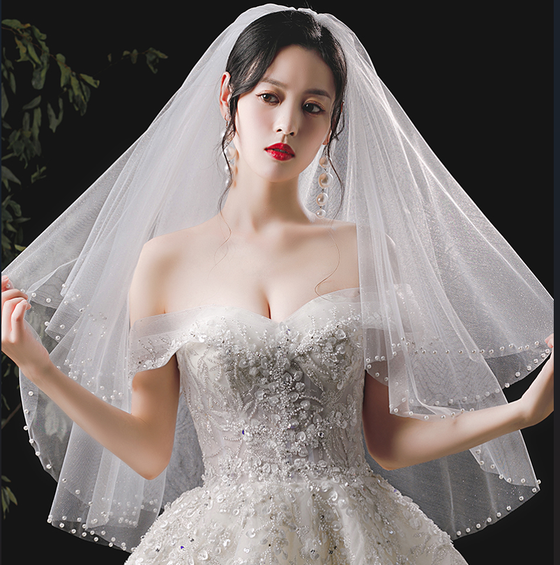 Feishiluo Deux Couches Visage Voile Bling Glitter Tulle Voiles De Mariage Courts Bord Perle Blanc/Ivoire Voiles De Mariée Avec Peigne