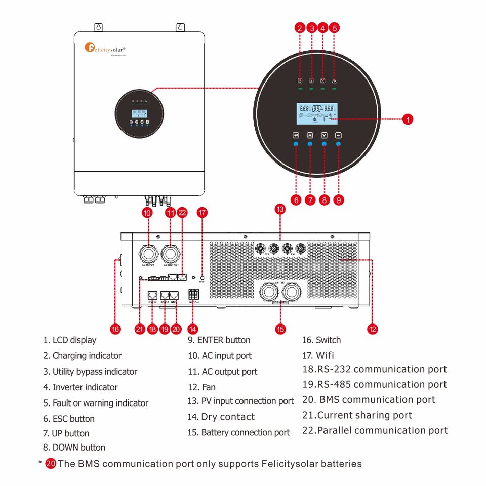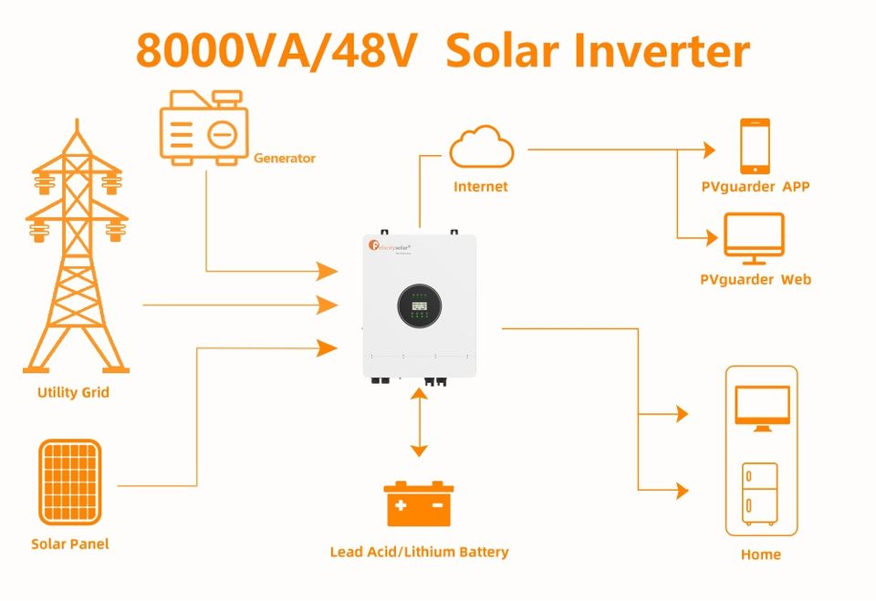 Système d'onduleur solaire Felicity, onduleur solaire hors réseau MPPT 8000W 8000VA