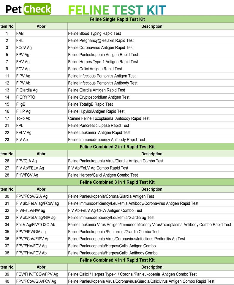 Numéro de Type:FIV FELV GIA
