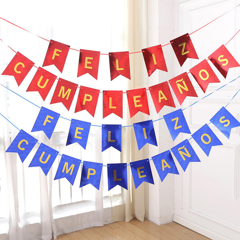 Feliz Cumbleanos Espanol Birthday Banner:iridescent shiny birthday flag banners in Espanol