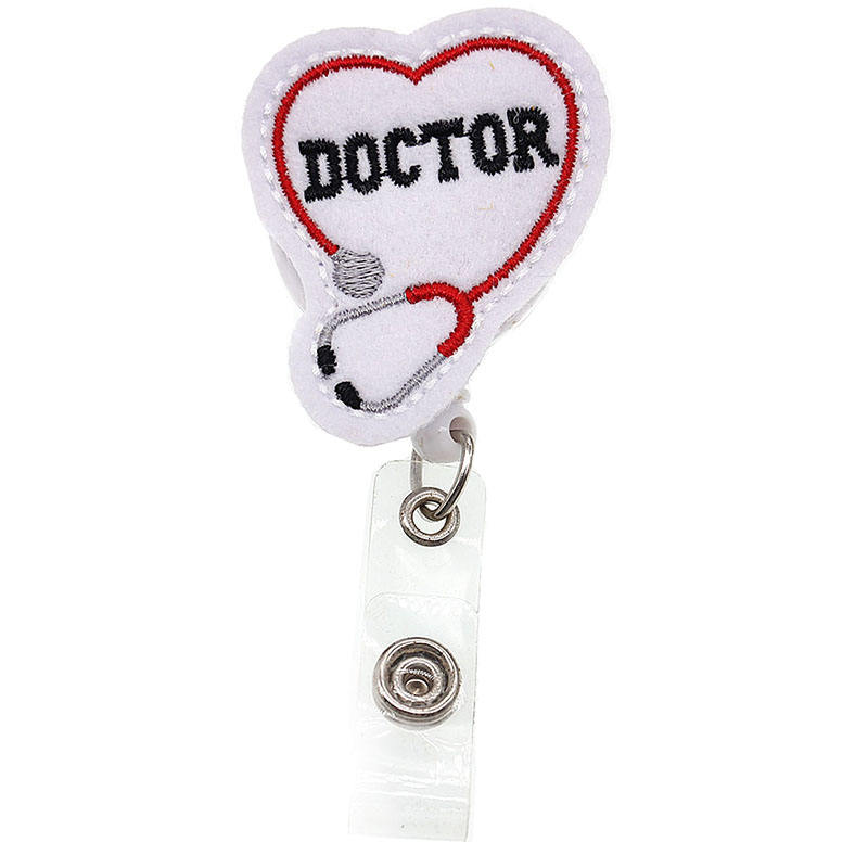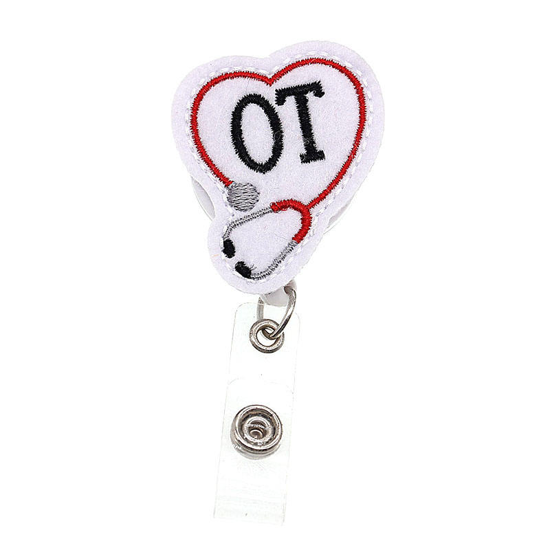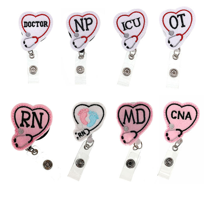Porte-badge rétractable en feutre série médicale avec lettres (Stéthoscope, Cœur, CNA, OT, Médecin, NP, ICU, MD, RN) pour cadeaux infirmiers et porte-badges d'identification