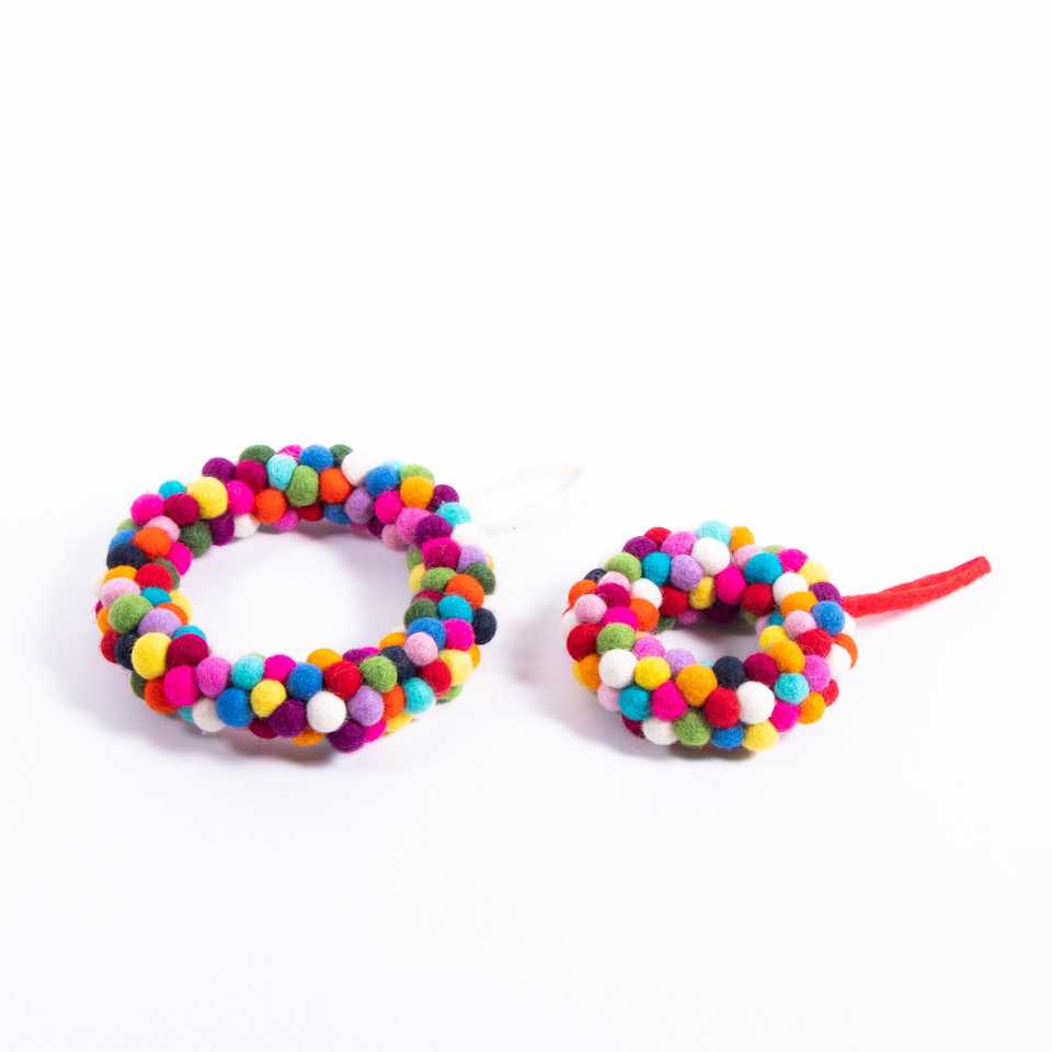 Feltandwool Colourful Felt Ball Wreath 20cm Eye-Catching Decorative Swag for Home or Office