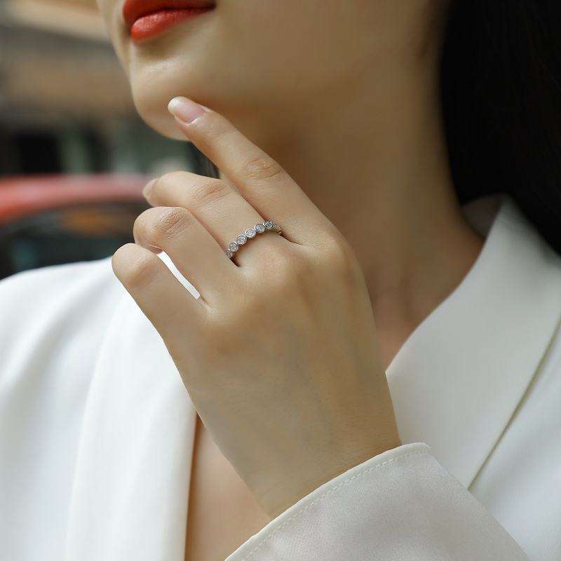 Female 925 Sterling Silver Luxury Women Fine Jewelry Rings Rhodium Plated Rings Bezel Setting Moissanite Eternity Rings