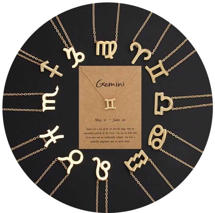 Colliers pour femmes élégants avec pendentifs, chaîne en or, collier ras du cou, astrologie, 12 signes du zodiaque, avec carte