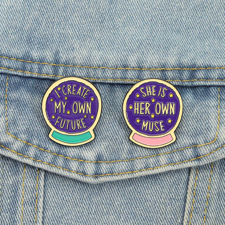 Féminisme magique boule de cristal émail broche je crée mon propre futur broche revers Badge autonomisation bijoux cadeau pour les femmes en gros