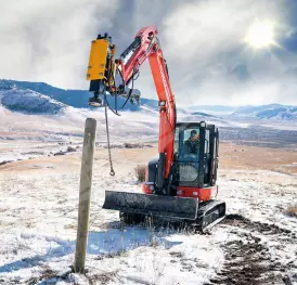Enfonce-pieux hydraulique pour clôture, compatible excavatrice et chargeuse compacte