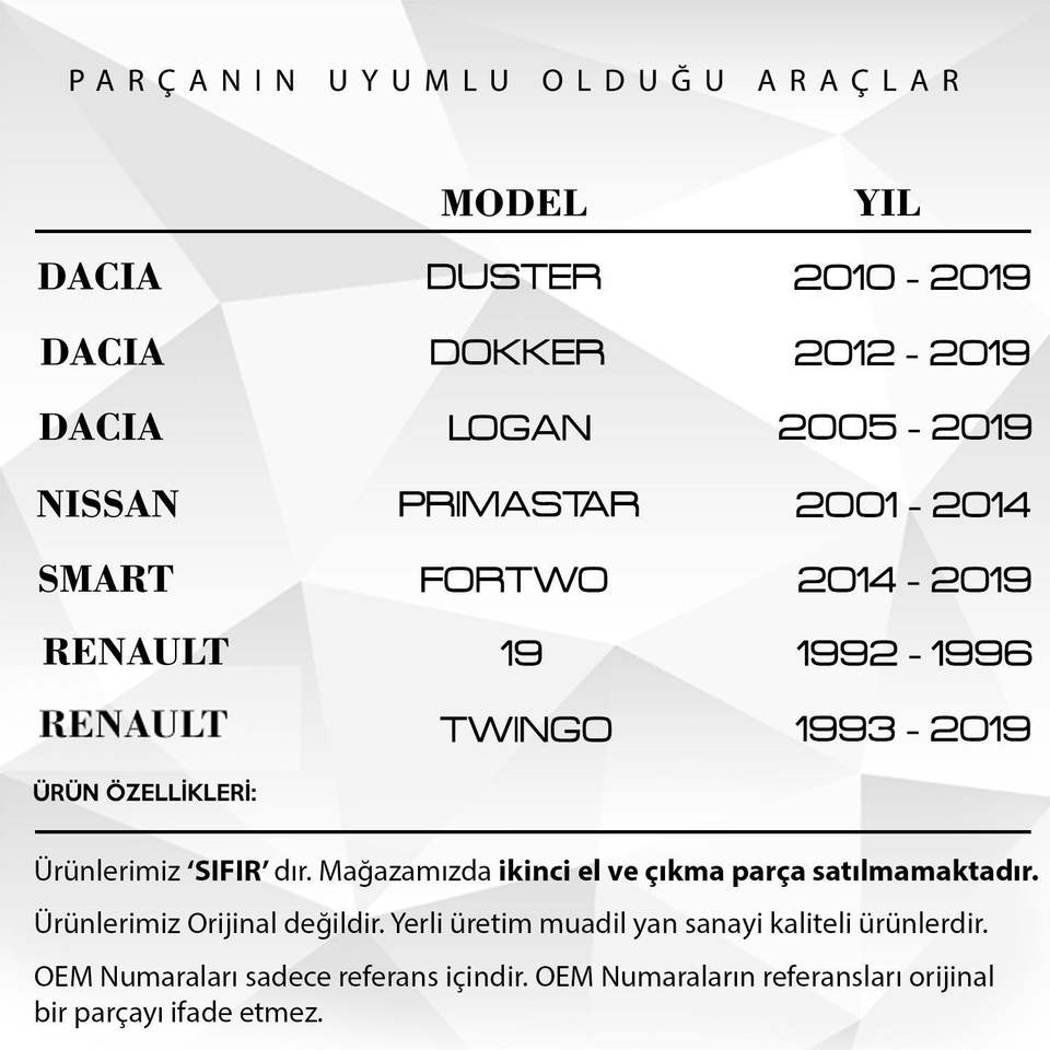 Marque nom:Renault Compatible Spare Parts
