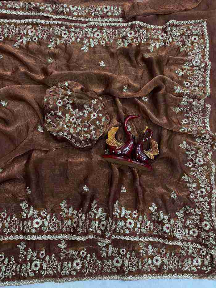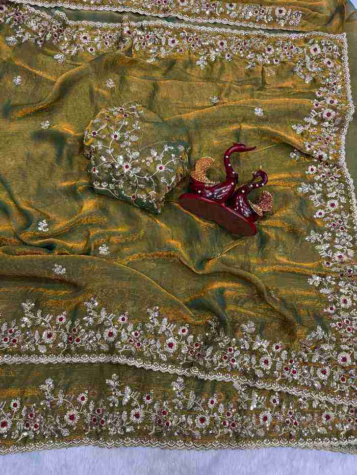 Collection de saris de créateurs en mousseline de soie Fendy, broderie, catalogue complet disponible au prix de gros, tissus fantaisie.