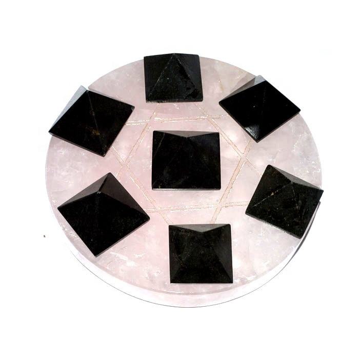 Style Feng Shui 7 pyramides de quartz rose sur la base de David Rose étoile dorée pierre semi-précieuse sculptée pour la décoration de la maison
