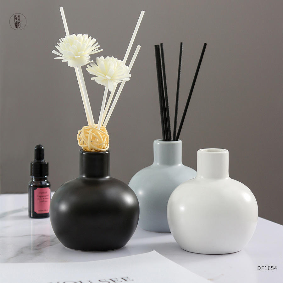Diffuseur d'arômes en céramique Fengxi, bouteille ronde de couleur unie, diffuseur d'huiles essentielles, décoration d'intérieur, table, DF1654