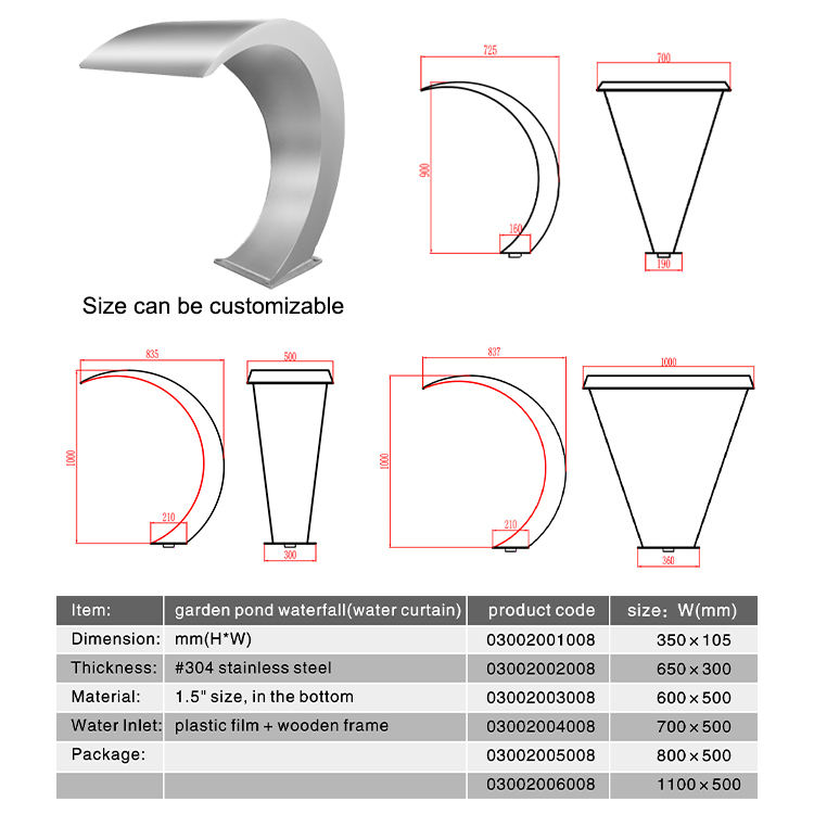 Product name:Artificial 304 316 stainless steel water fall swimming pool shower