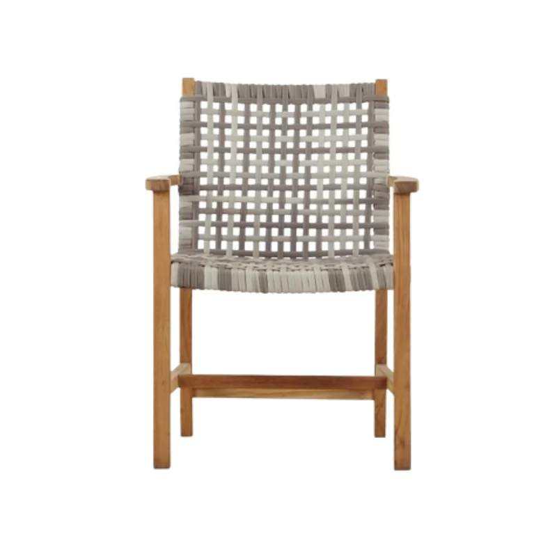 Chaise de salle à manger Fenmoor avec tissage en rotin synthétique - Design moderne en bois de teck pour la salle à manger en plein air dans les parcs, les hôtels et les villas