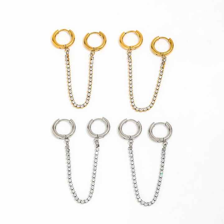 Fenny No Fade 18K plaqué or zircone pavé chaîne gland Double Ciecle Huggie boucle d'oreille en gros en acier inoxydable dames bijoux