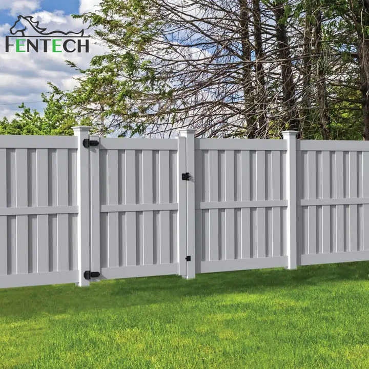 Panneaux de clôture semi-privés en PVC vinyle blanc Fentech 6x8 pieds avec poteaux, résistants aux UV, type Shadow Box