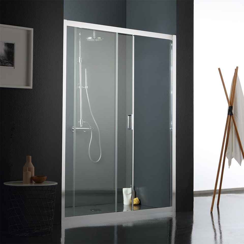 Porte de douche en verre transparent Ferrara 150CM avec deux panneaux, design minimaliste, étanche