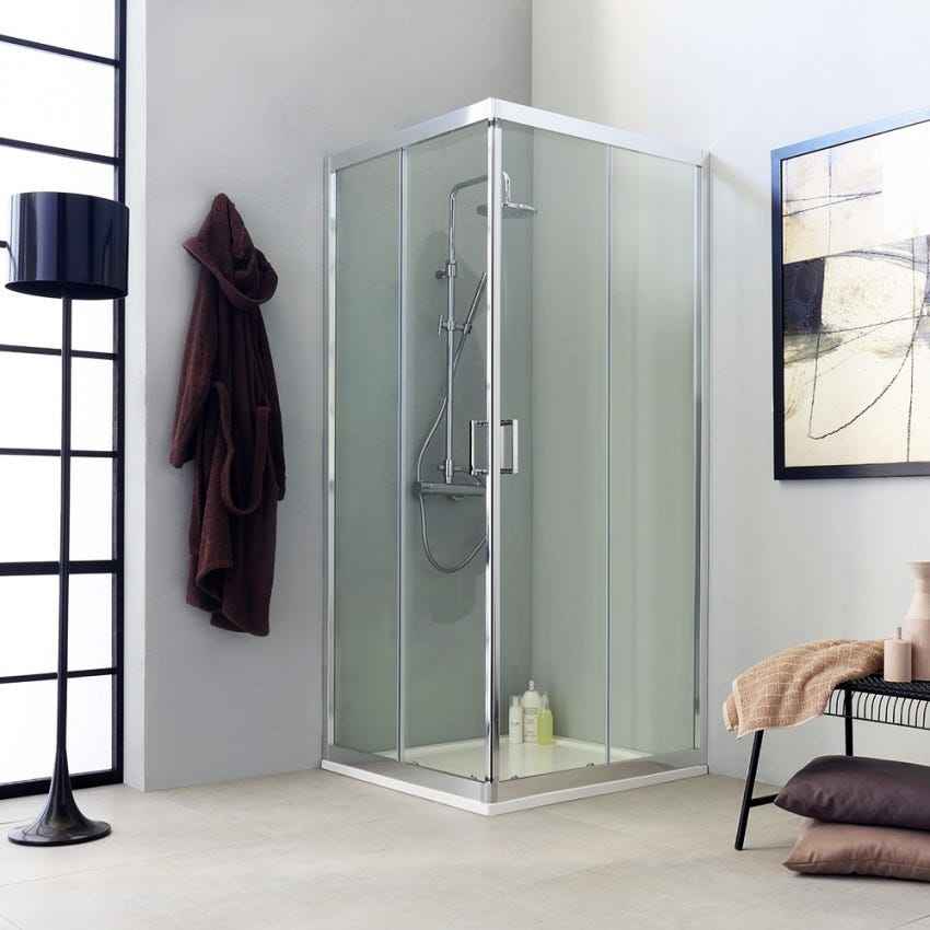 Ensemble de cabine de douche carrée en verre Ferrara au design moderne, trois pièces, 70x70, profil plat