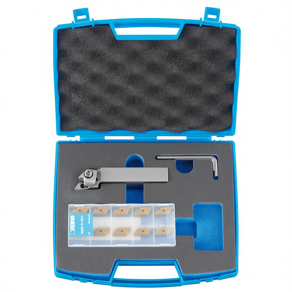 Outil de tournage externe Fervi avec inserts, ensemble de 10 pièces pour l'usinage des métaux