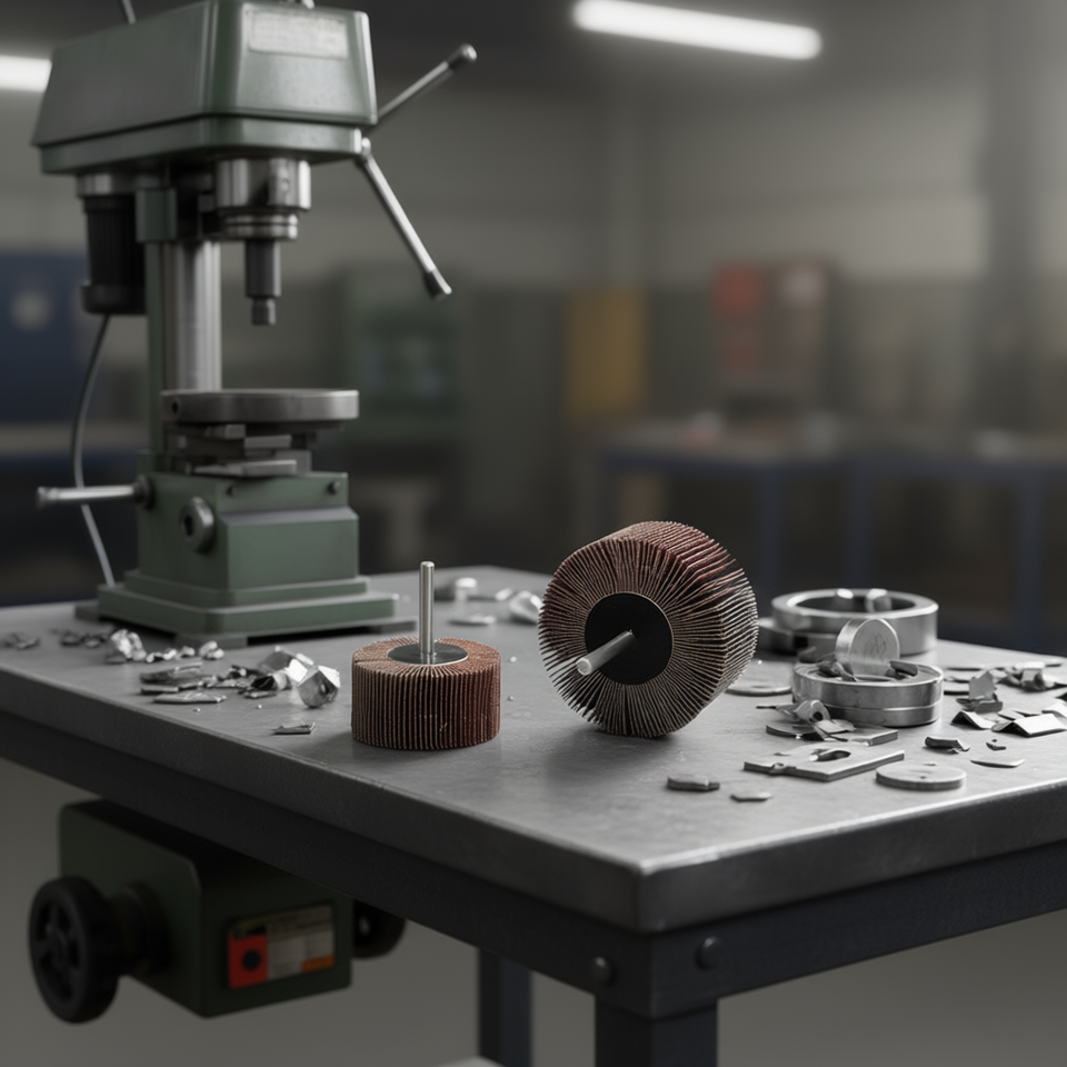 Roue à lamelles Fervi en oxyde d'aluminium avec tige en tissu de 10 mm, outil abrasif pour le polissage des métaux