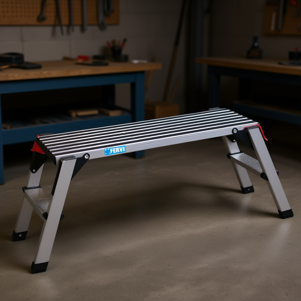 Plateforme pliante antidérapante Fervi 120 cm, établi en aluminium avec pieds réglables pour usage en atelier