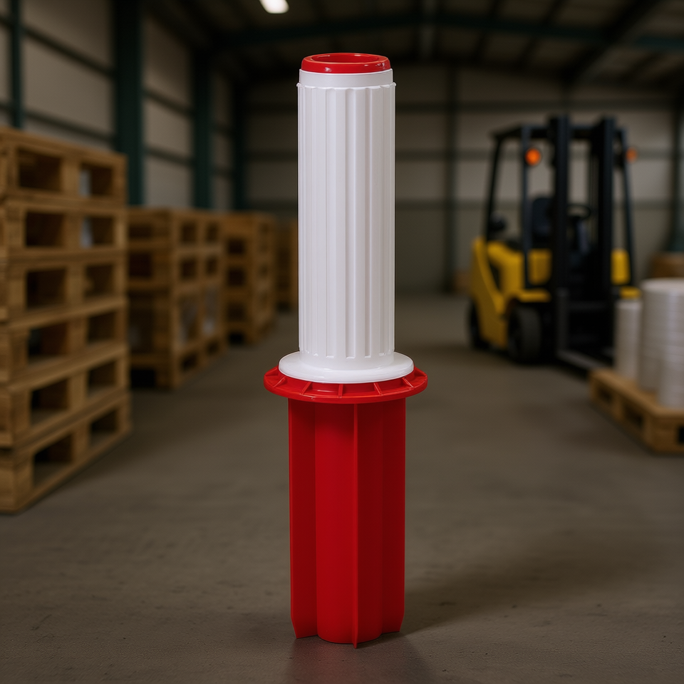 Poignée Fervi pour film étirable, rouleau en plastique rouge et blanc, diamètre 50 mm, usage industriel
