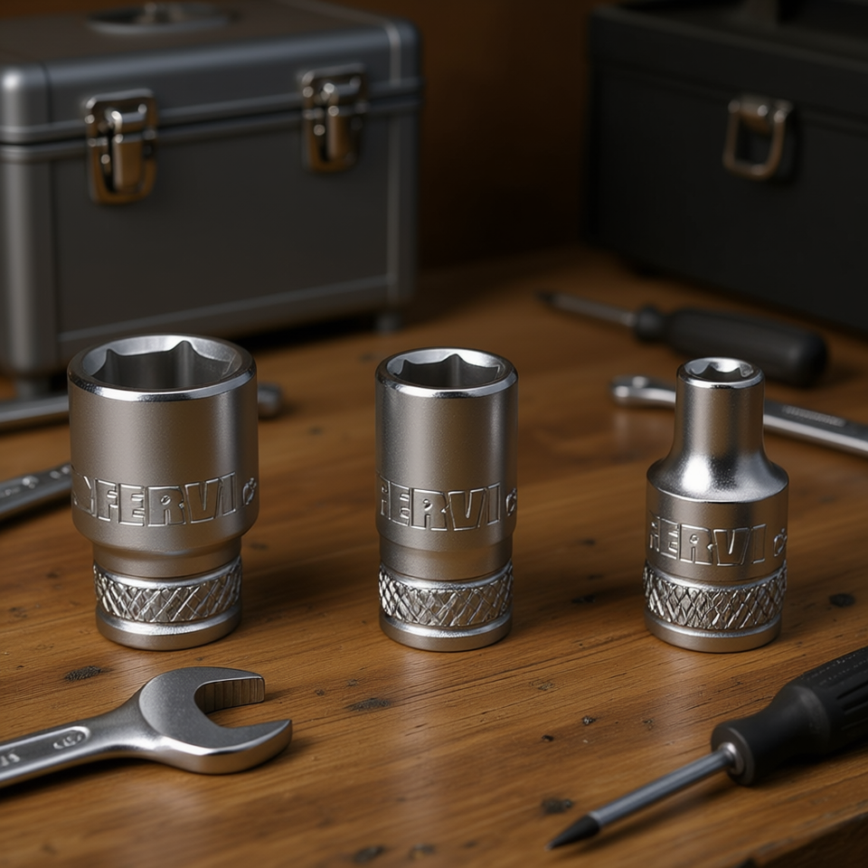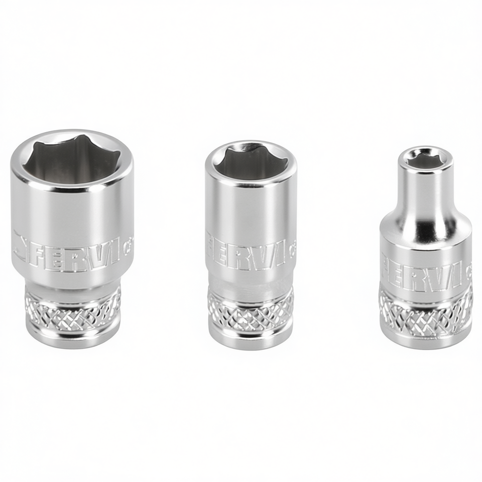 Clé à douille hexagonale Fervi, série normale, ensemble de 3 pièces, finition chromée métrique