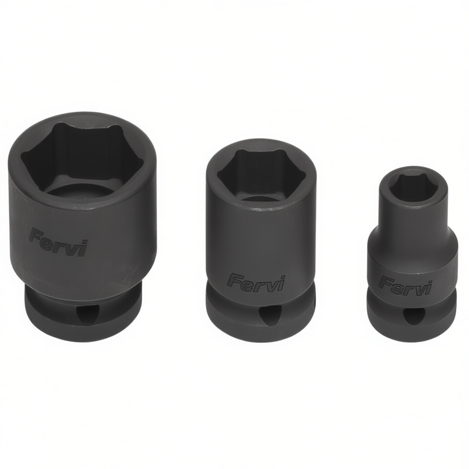 Jeu de clés à douille à chocs Fervi, 3 pièces, métriques, à embout hexagonal