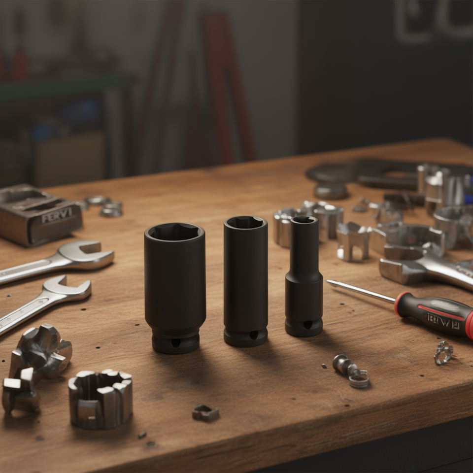 Jeu de clés à douille à chocs Fervi, 3 pièces, métriques, à embout profond