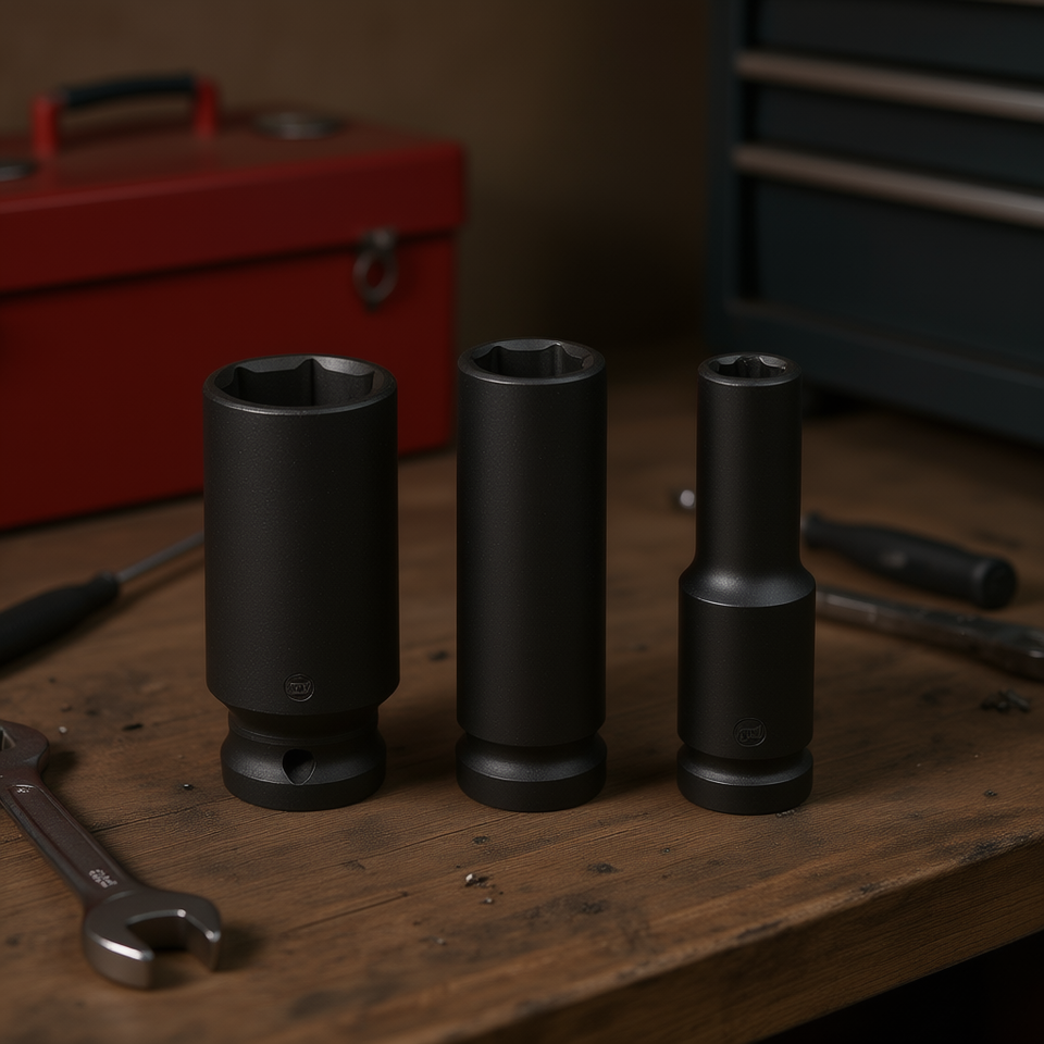 Jeu de clés à douille à chocs Fervi, 3 pièces, métriques, pour douilles profondes