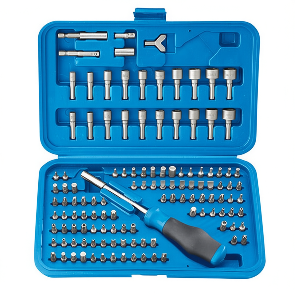 Jeu de douilles Fervi 100 pièces avec poignée et étui de rangement pour les tâches de réparation de précision