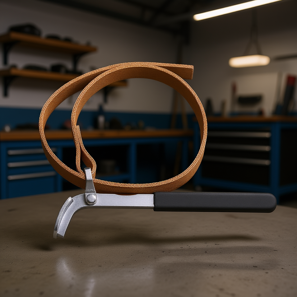 Clé Fervi pour filtre à bande, outil automobile en caoutchouc avec crochet et sangle métalliques