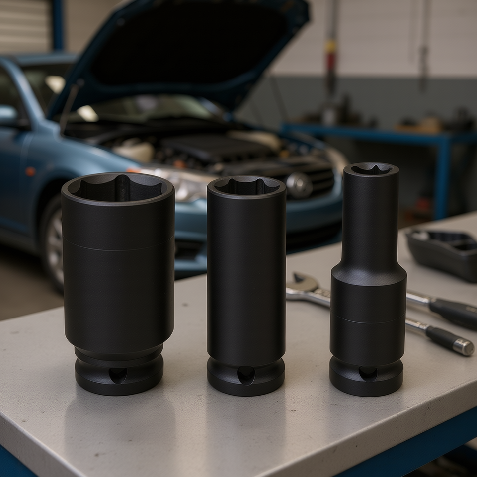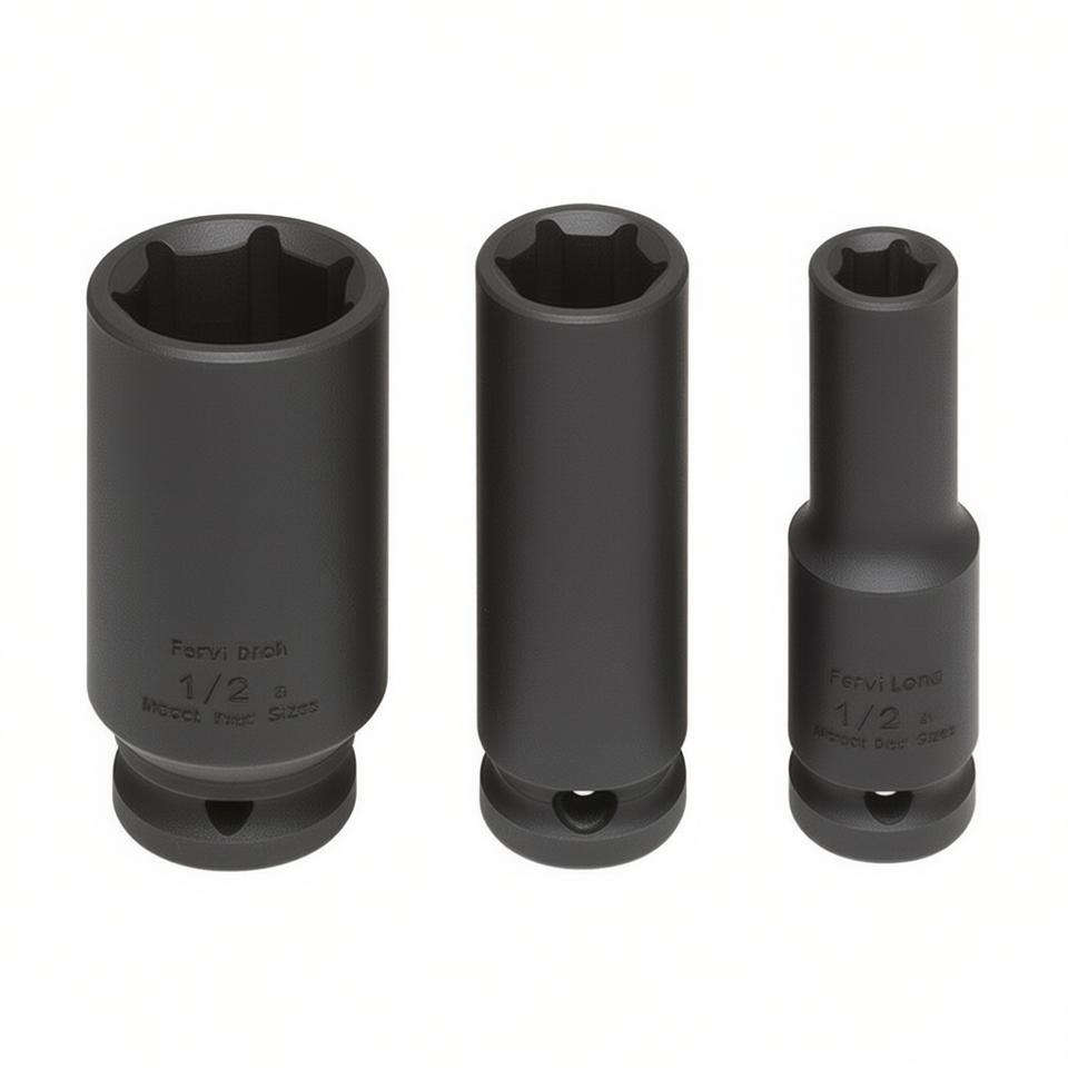Jeu de clés à douille à chocs longues Fervi, entraînement 1/2 pouce, tailles métriques, pour réparation automobile