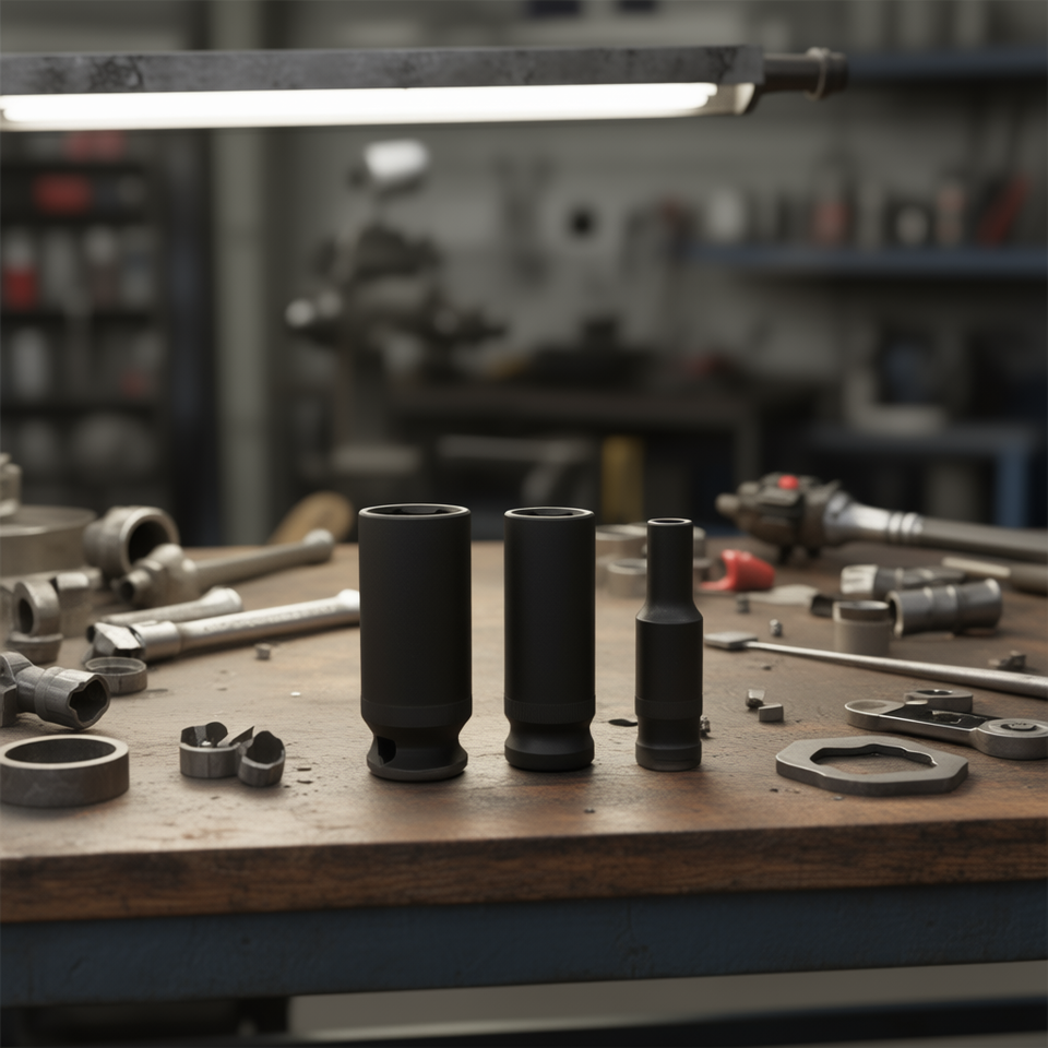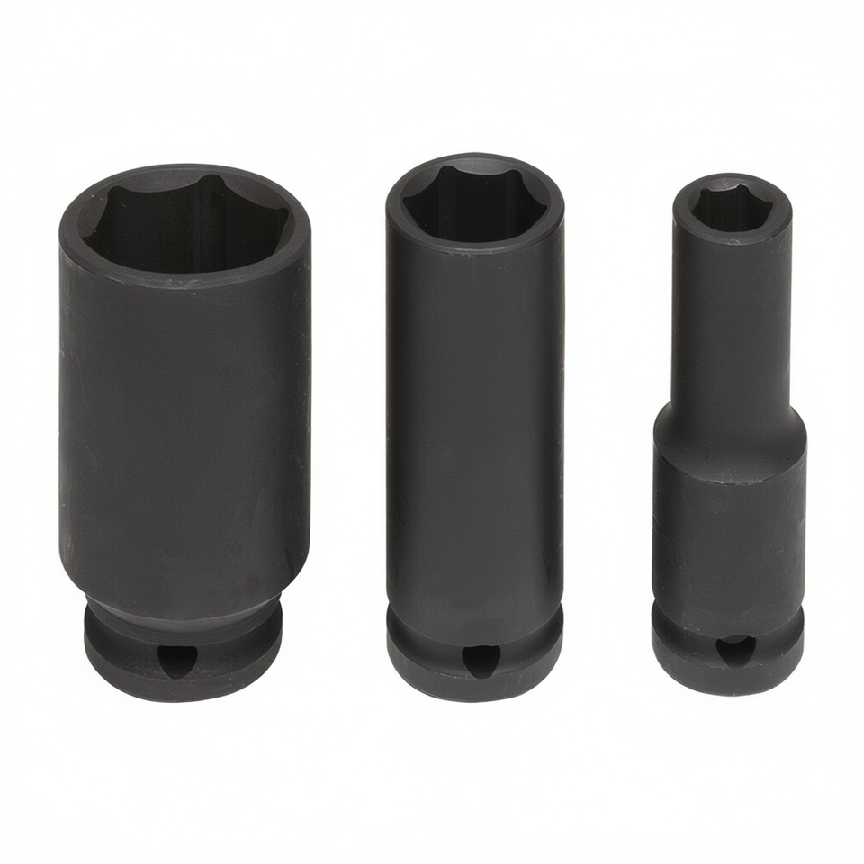 Jeu de clés à douille à chocs longues Fervi, 3 pièces, métriques, à encoche profonde