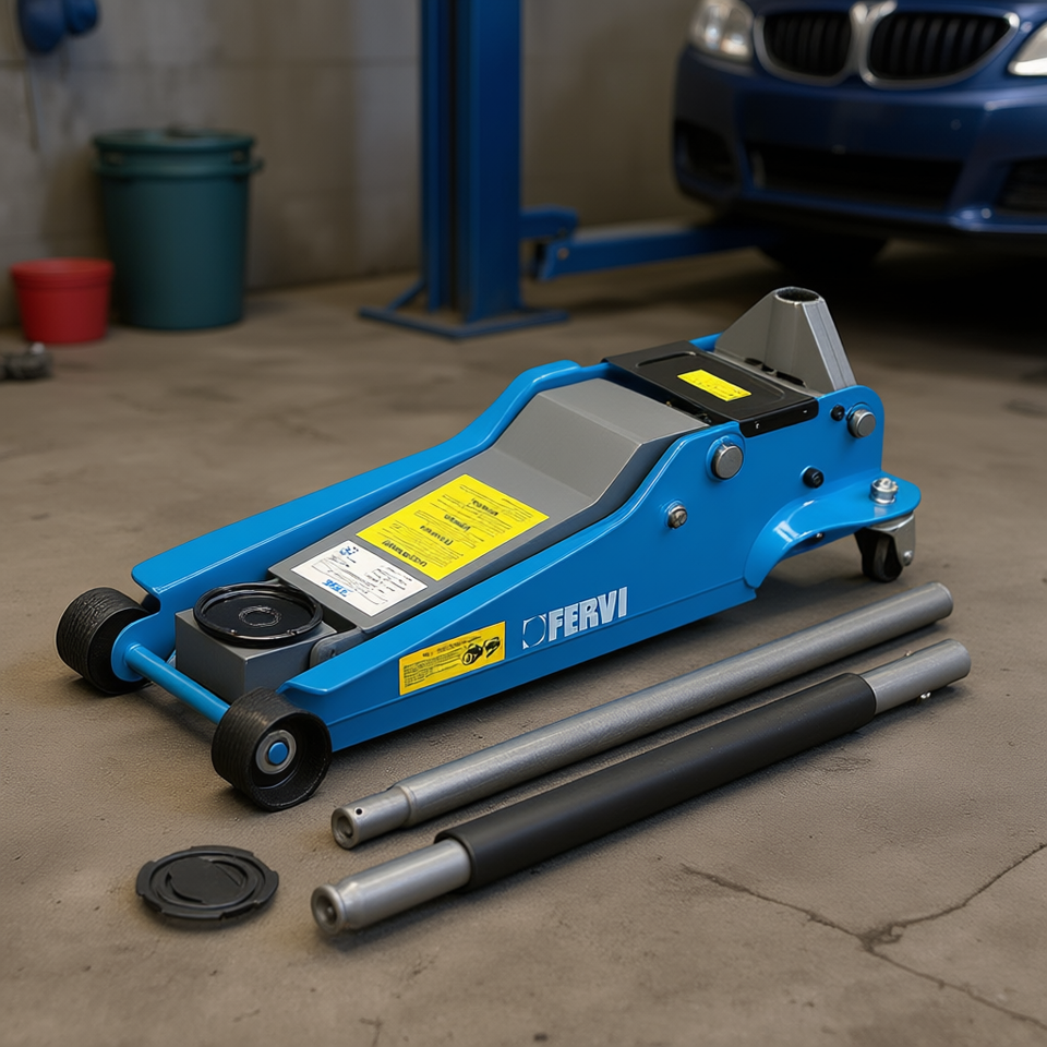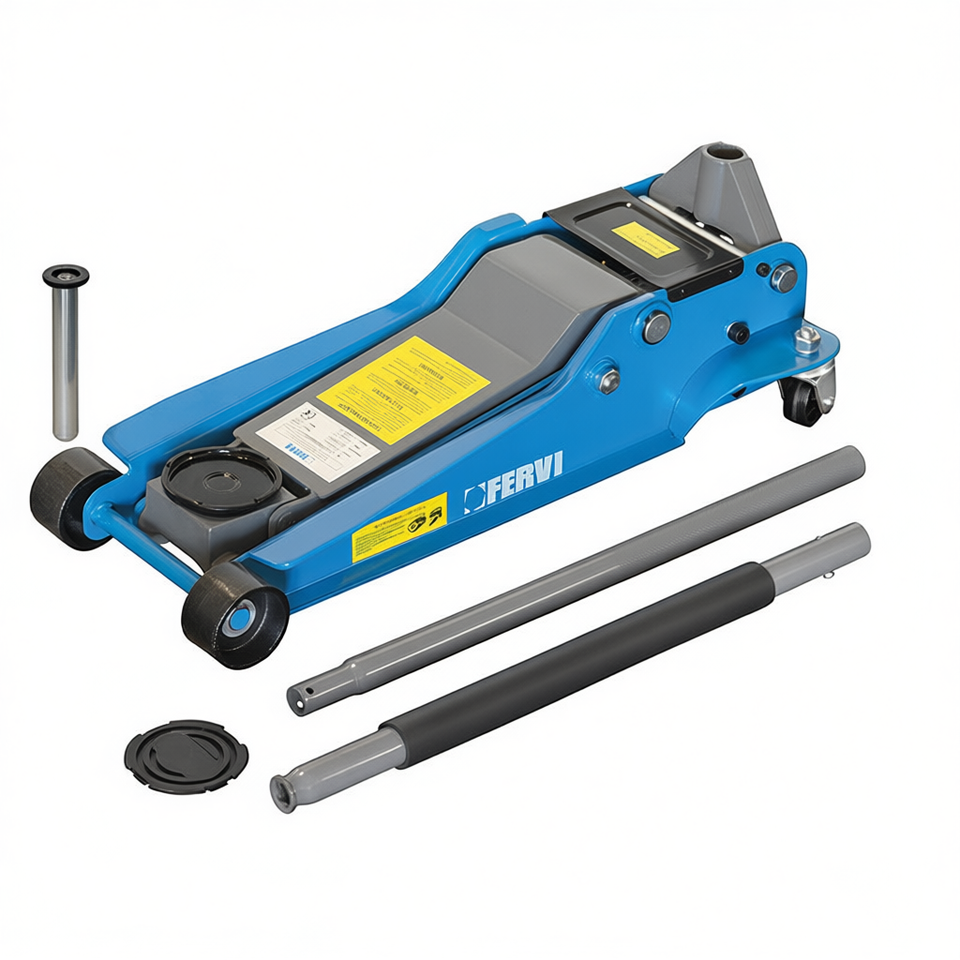 Cric hydraulique intégral à profil bas Fervi 21-30T en métal pour usage automobile, garantie 3 ans