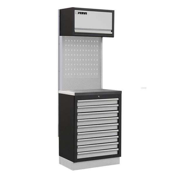 Armoire d'atelier modulaire Fervi A008R, unité de rangement d'outils avec panneau perforé et tiroirs pour garage