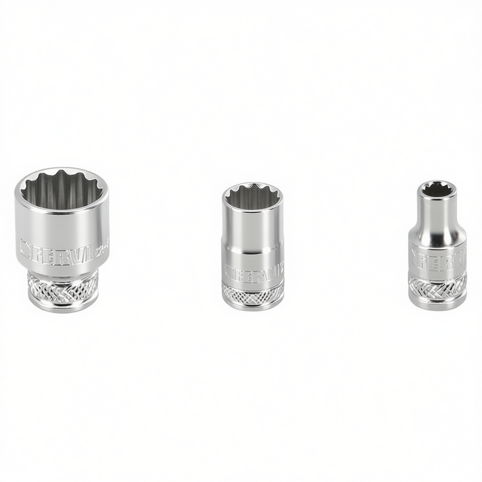 Clé à douille polygonale Fervi, série normale, 12 points, en acier au chrome vanadium, pour réparation automobile