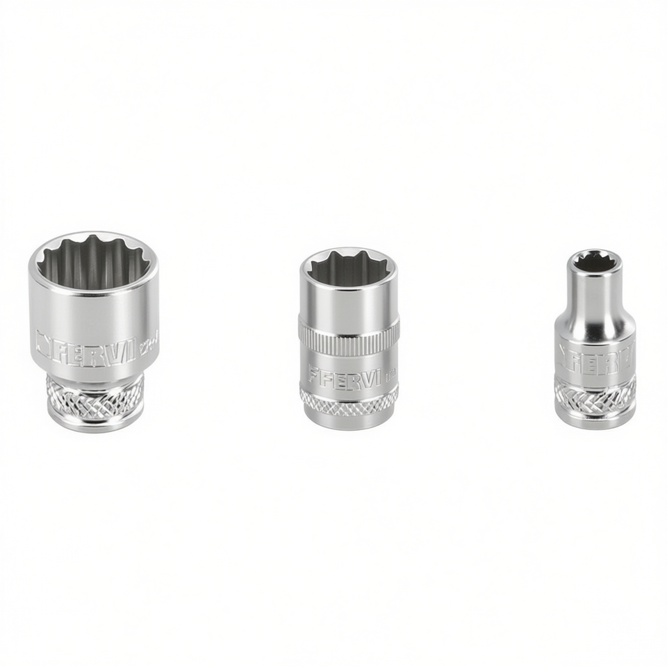 Clé à douille polygonale Fervi, série normale, jeu de 12 mm, 10 mm, 8 mm