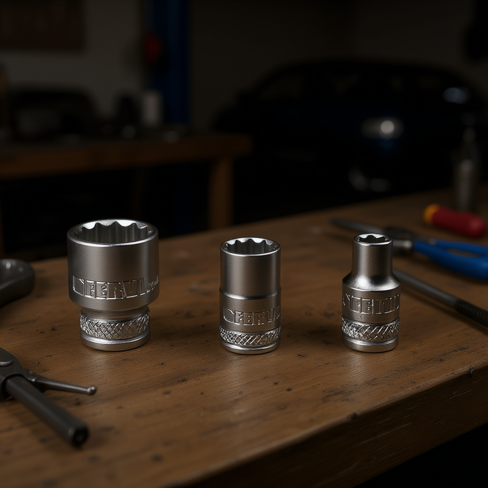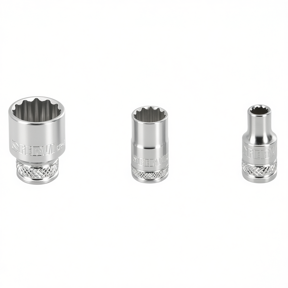 Clé à douille polygonale Fervi, série normale, jeu de 12 points en acier au chrome vanadium
