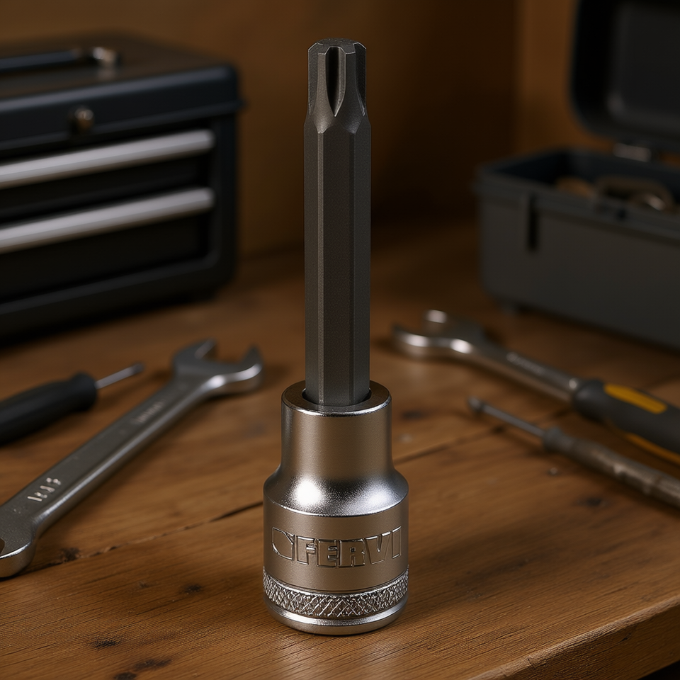 Adaptateur de douille Fervi 1/4 pouce Torx T25 à tige longue