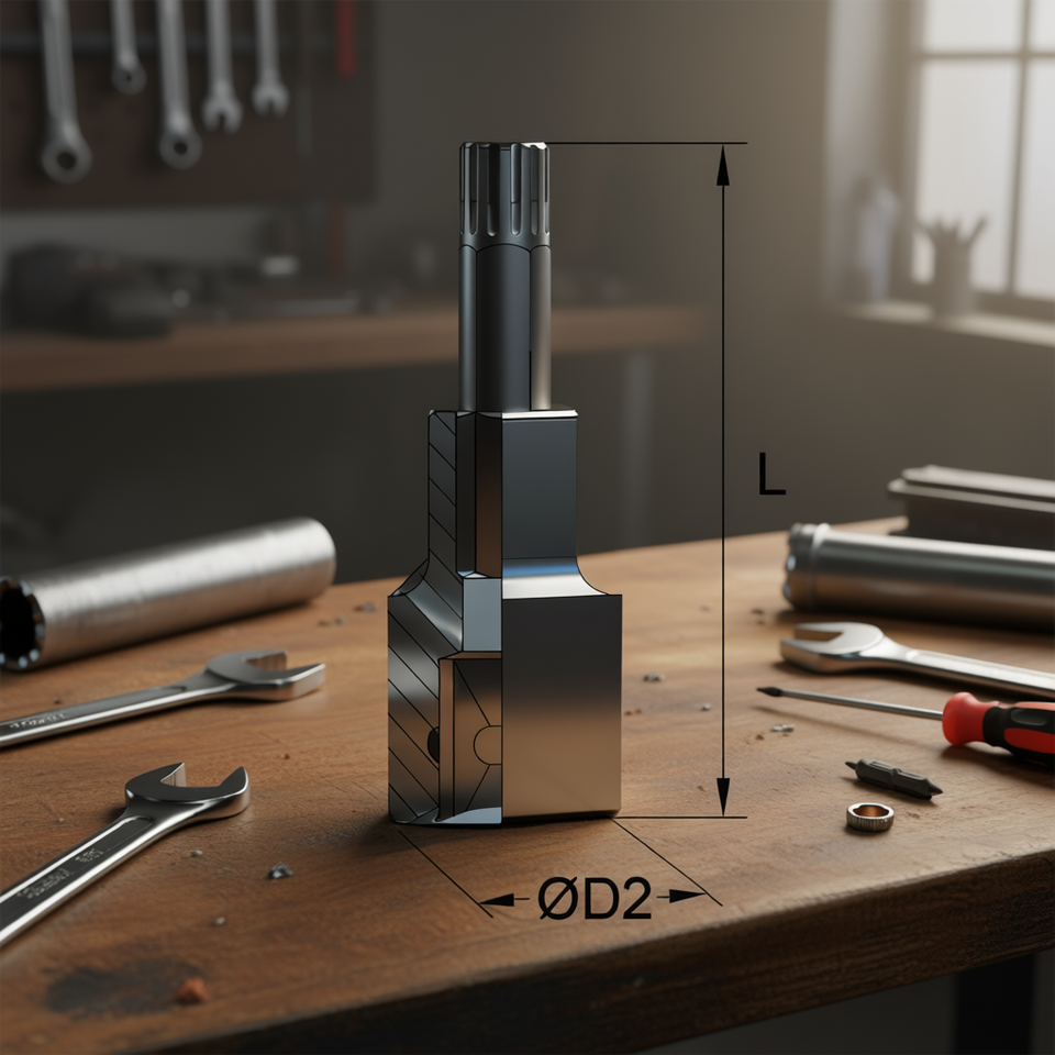 Clé à douille Fervi avec insert nervuré 12 mm de longueur, diamètre D2